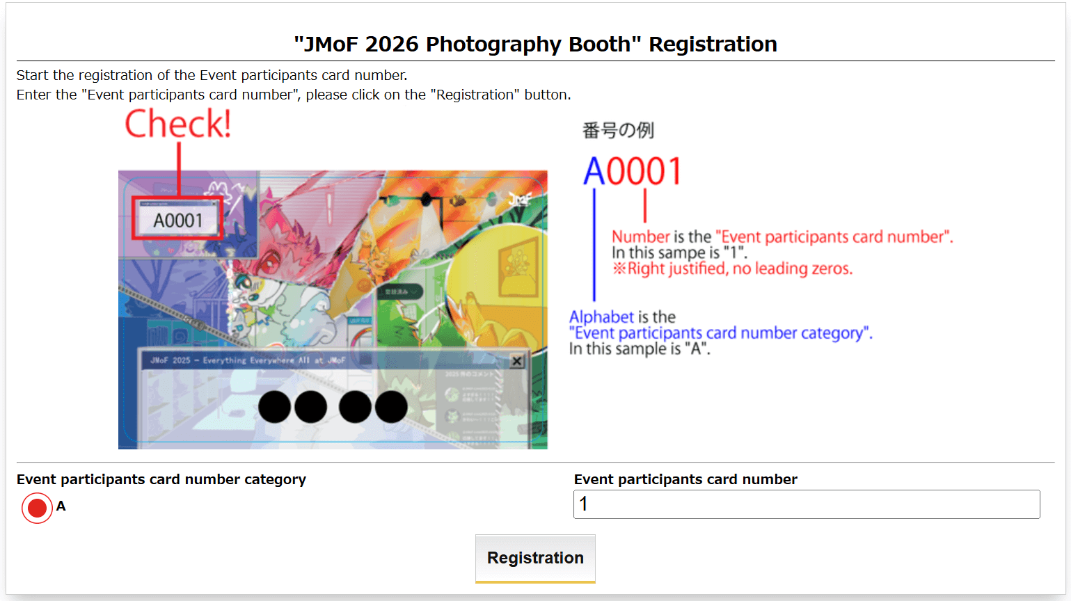 Next, register the "Event participants card number" in this website.
