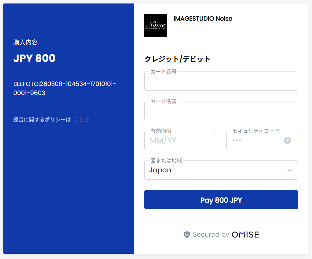 - クレジットカードのお支払い画面が表示されますので、クレジットカード情報をご入力のうえご決済をお願いします。
