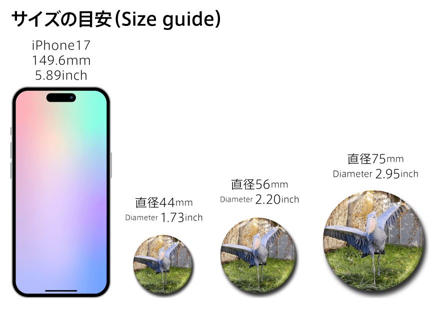 お手頃だけれどサイズ感がほしい場合は44mm、大きめのサイズで遠くから見ても目立たせたい場合は75mmがオススメ!